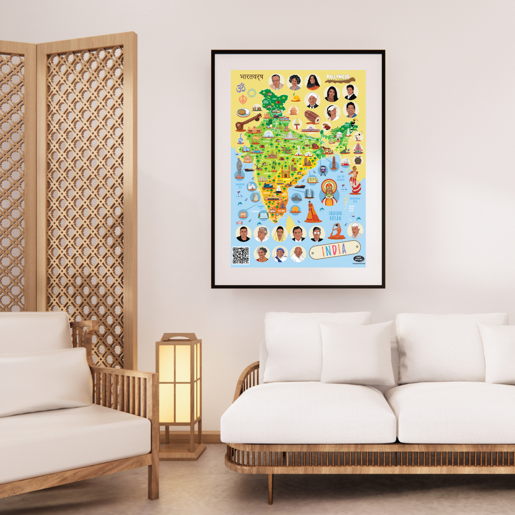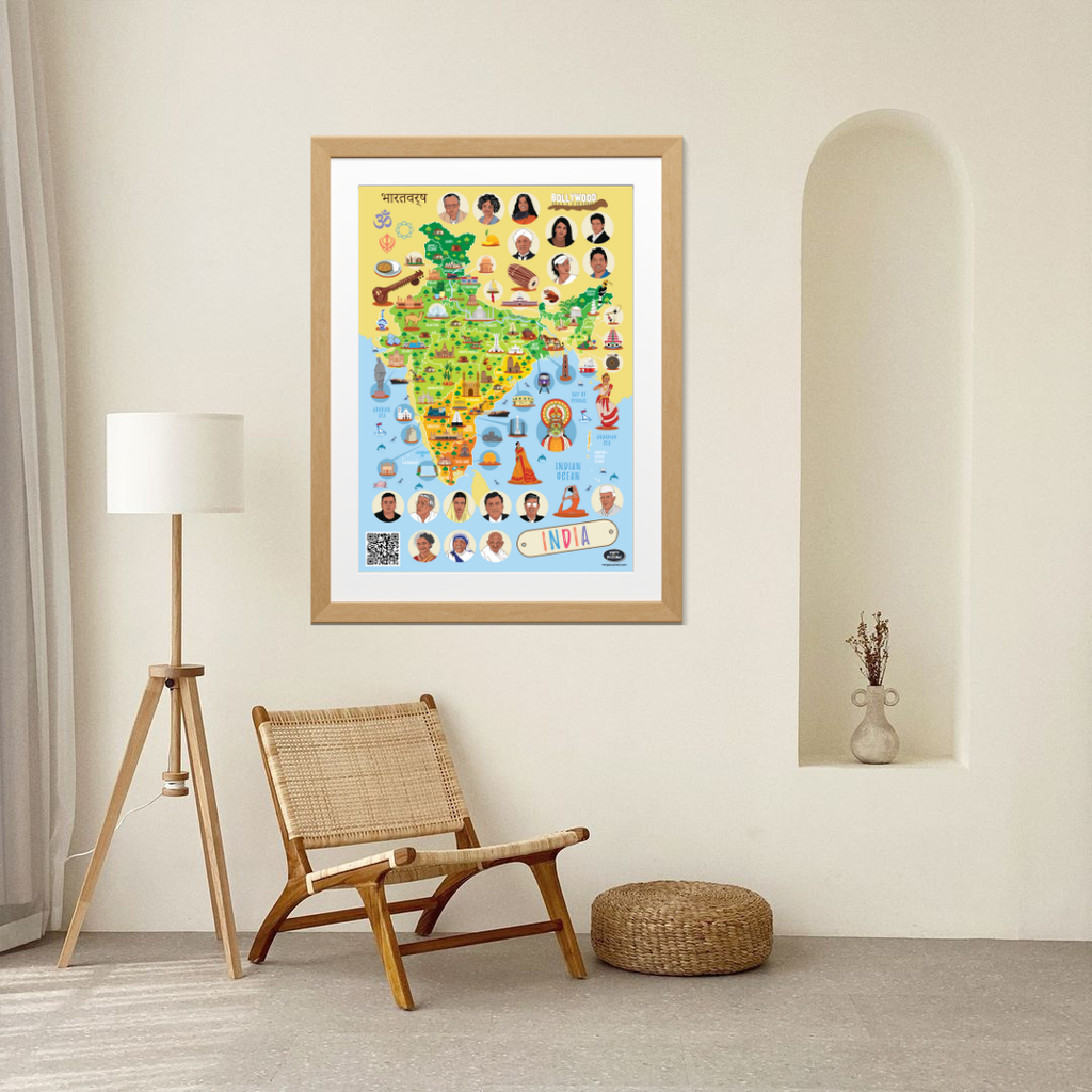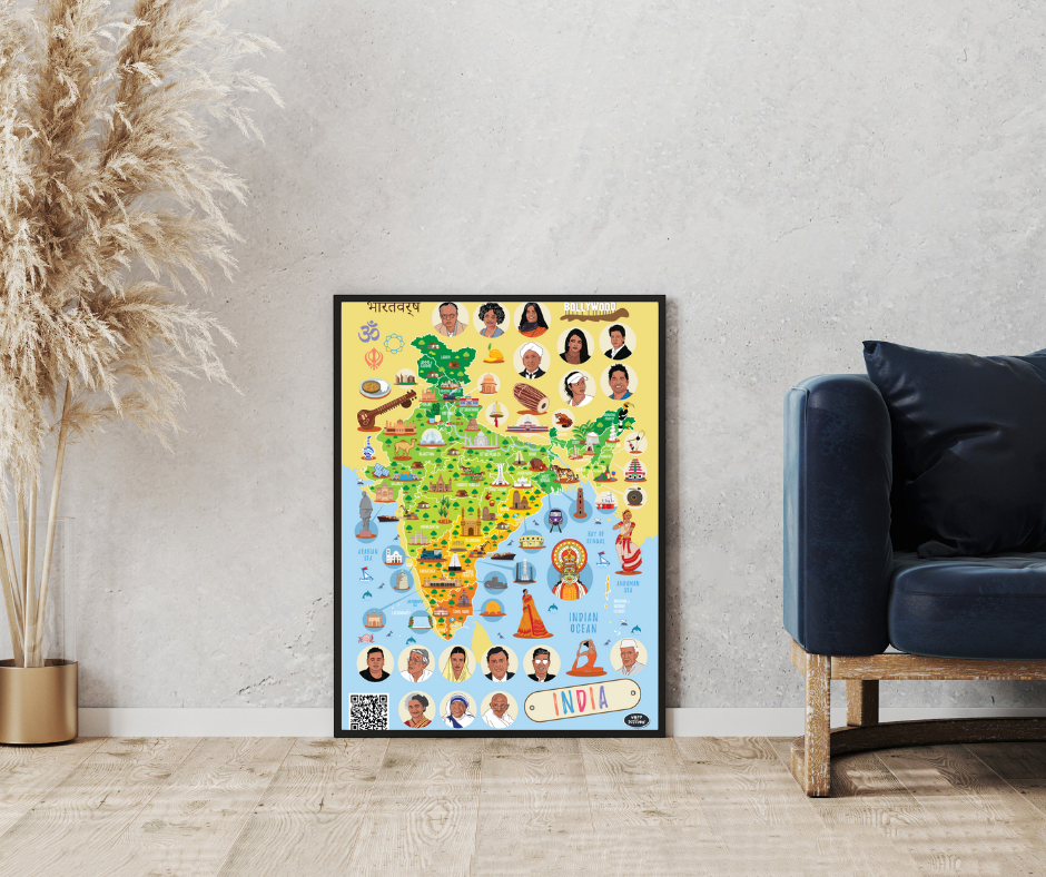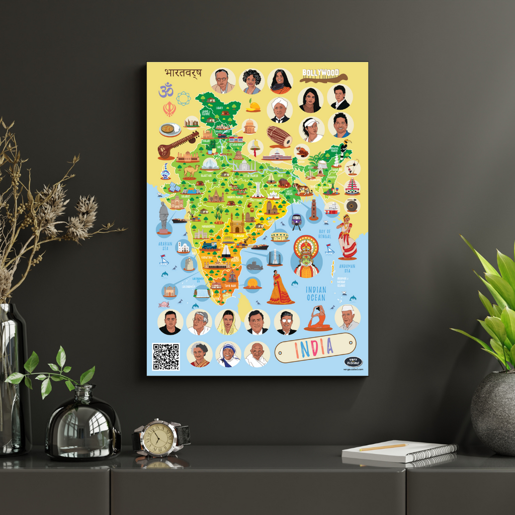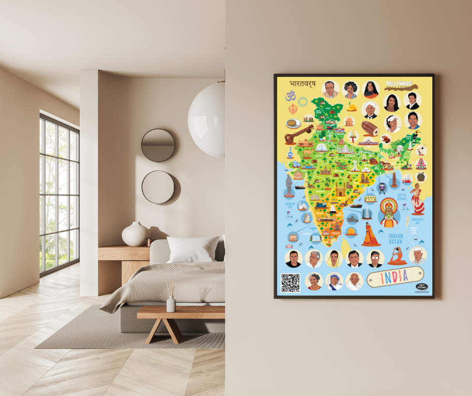Celebrate the beauty, spirit, and diversity of India every day with the India Map Poster – where learning meets creativity in stunning color!