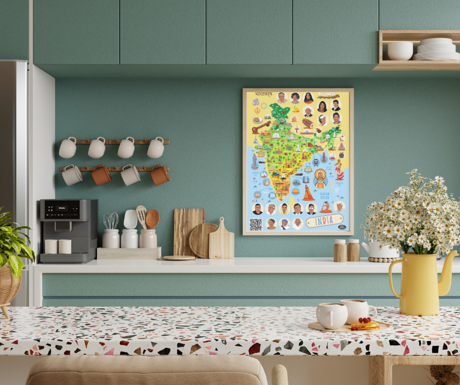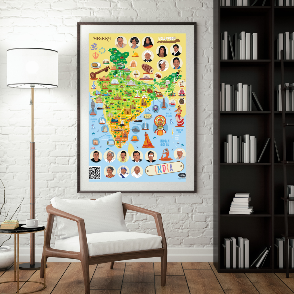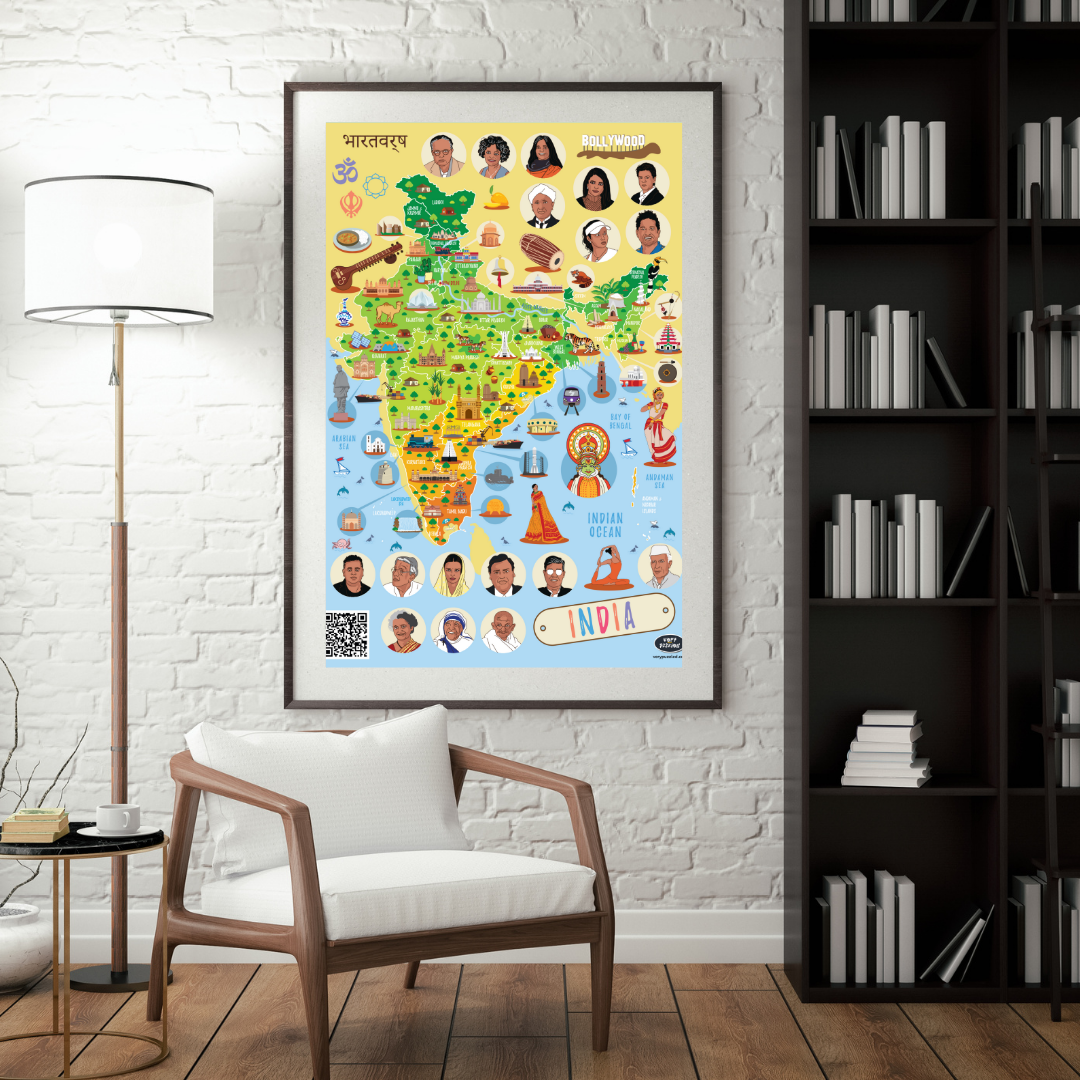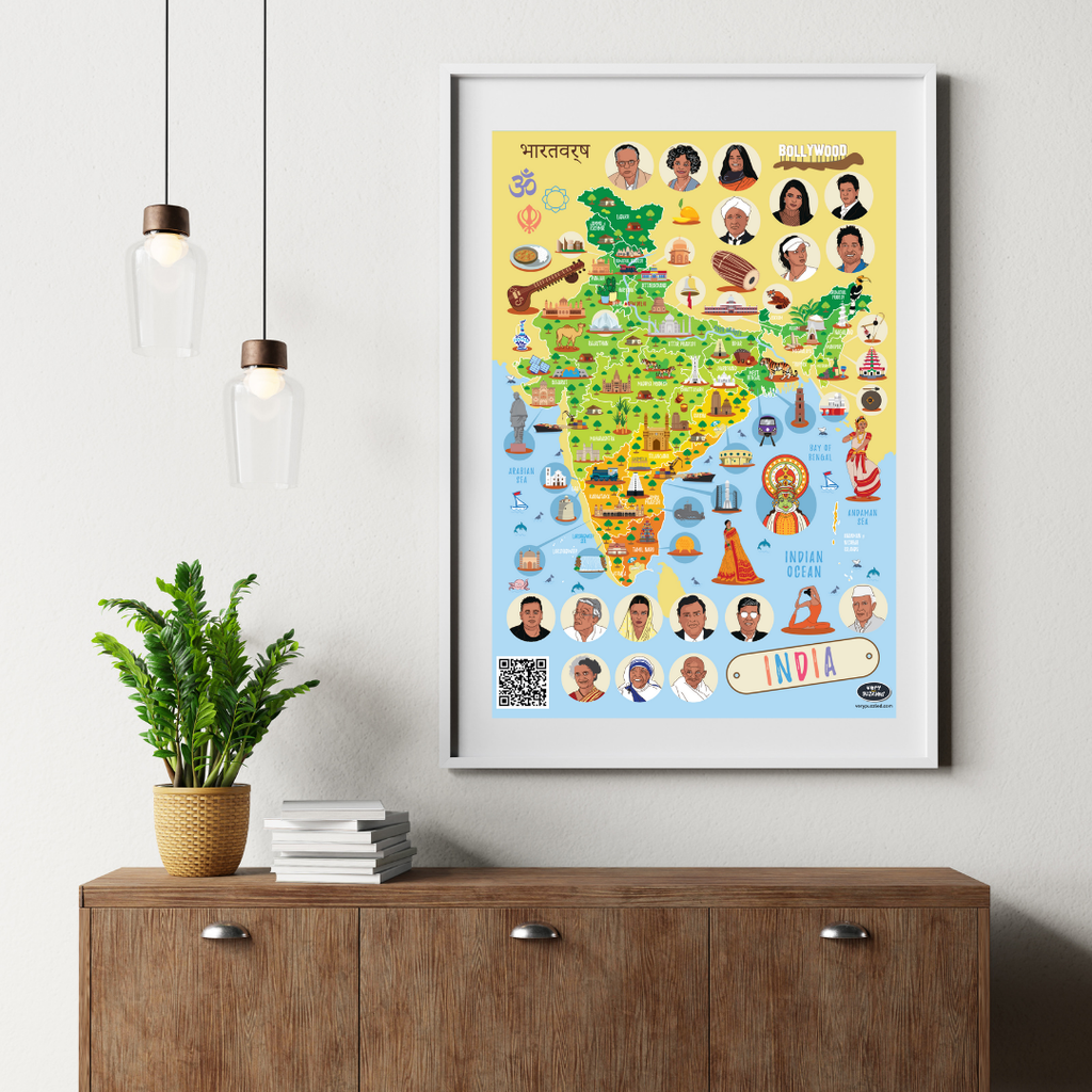 Celebrate the beauty, spirit, and diversity of India every day with the India Map Poster – where learning meets creativity in stunning color!