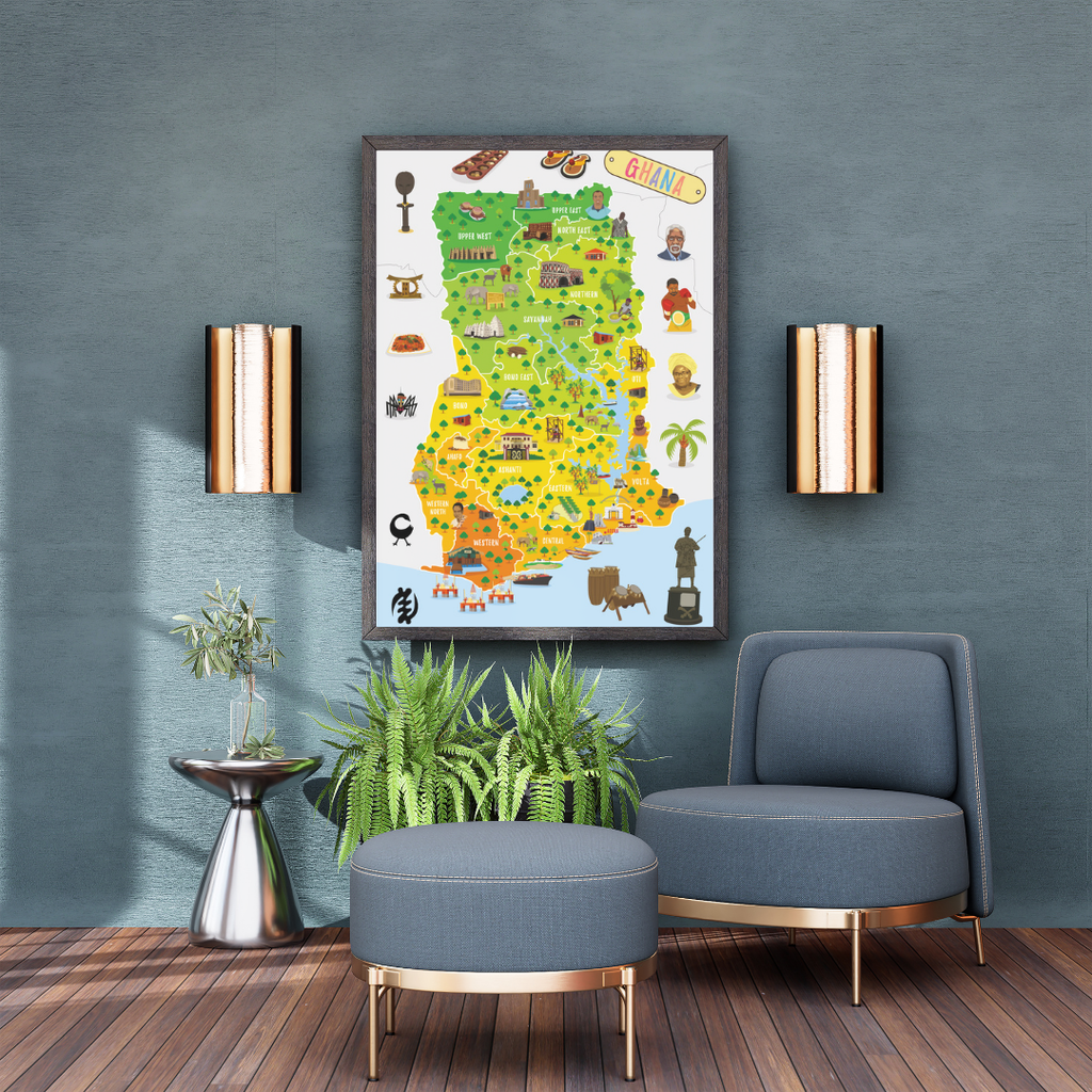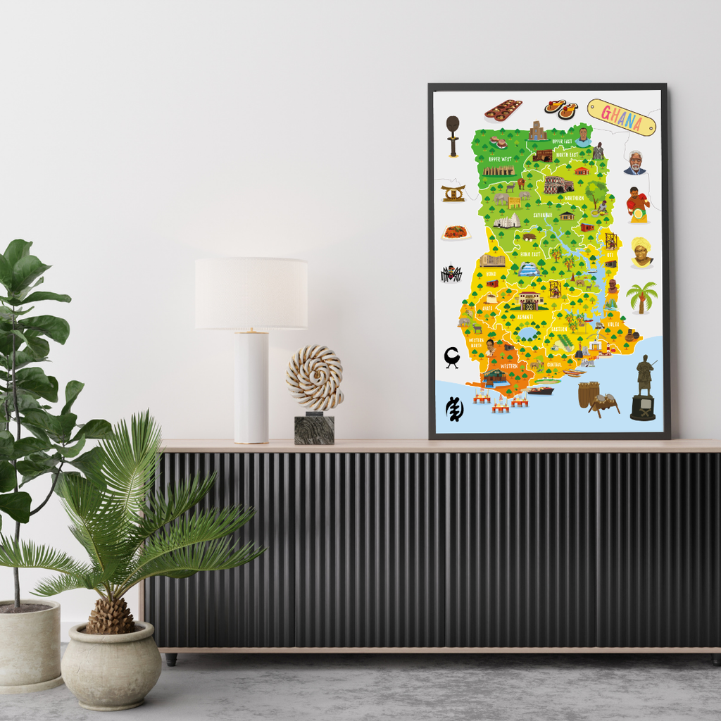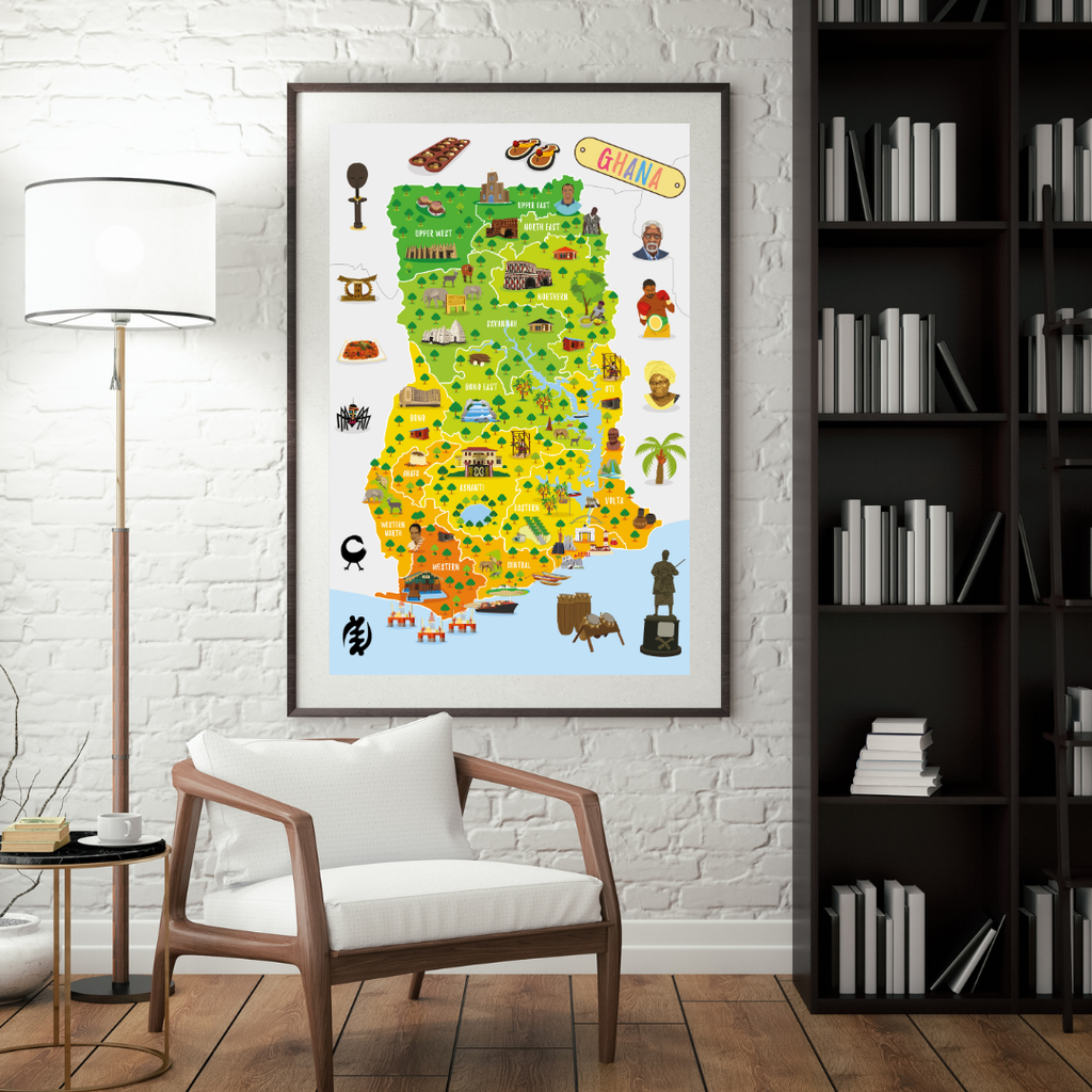 The Very Puzzled Ghana map poster is of an A2 poster with each region of Ghana is represented with a variety of landmarks, monuments and attractions it will provide endless fun and topics of discussion that can be used as fun way to learn for both children and adults.